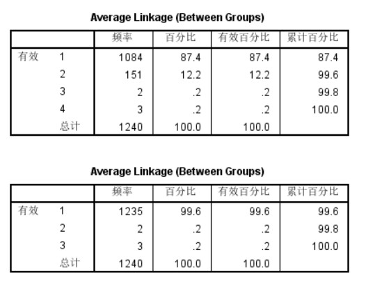 利用SPSS软件对筛选出的这1240个用户进行系统聚类,指定3~4个分类,发现分成4类较为合理。